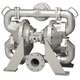 4" pumpe. Trykkforhold 1:1. Maks arbeidstrykk 8,6 bar. Trykklufttilkobling: 3/4" Npt innv. gjenge. Klaffeventilert, slipper gjennon 75 mm partikler. Trinnløs variabel kapasitet: 0-988 l/min. Modellen leveres i flere materialutførelser. Atex 100A er standard. Tilkobling innløp og utløp: 4" ASA flens. Pumpen er selvsugende, kan tørrkjøres, stopper mot stengt utløp. Kontroller kjemisk motstandsliste før pumpe bestilles.